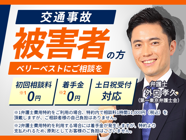 0円 ※弁護士費用特約がある場合相談料を保険会社からいただきますが、お客様の負担はありません。